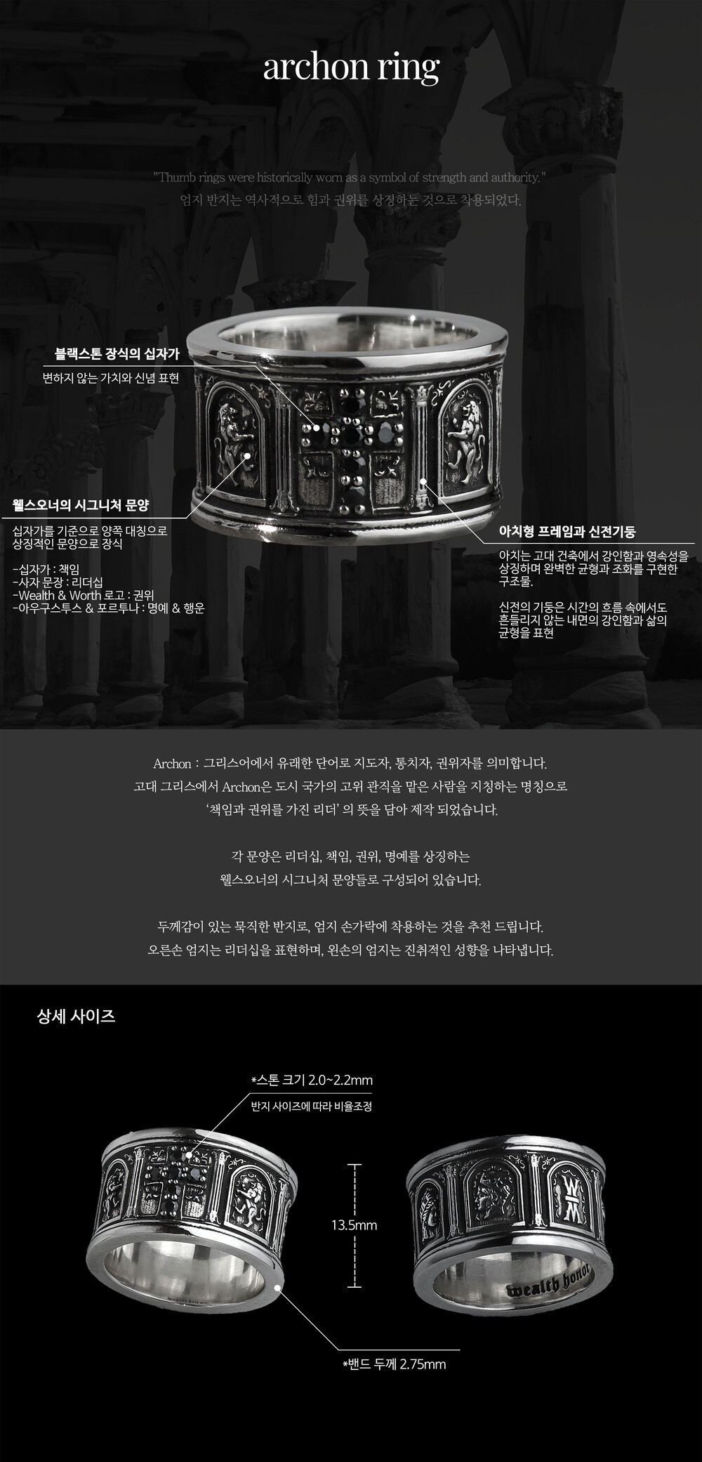 *이 반지는 디자인의 상징성과 의미를 온전히 느끼기 위해 엄지손가락에 착용하시는 것을 추천드립니다.
